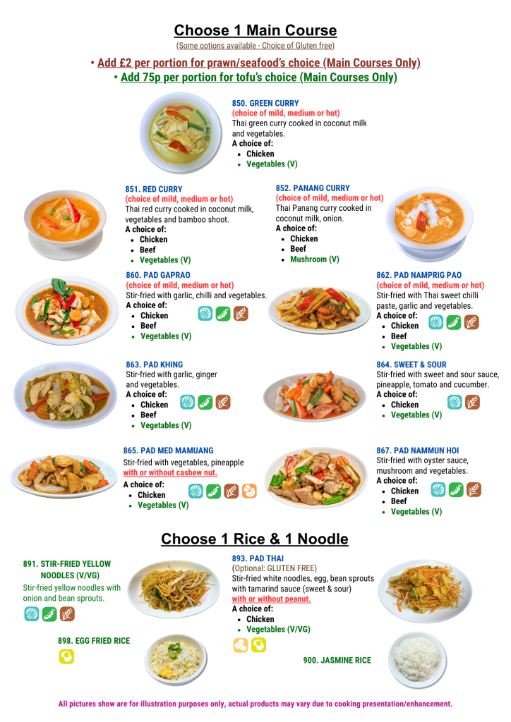 1 Starter, 1 Main Course, 1 Rice & 1 Noodle dish